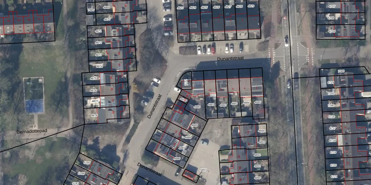Het perceel waarop Dunantstraat 14-B staat heeft een oppervlakte van 220 m². Dit is een middelgroot perceel. De perceeloppervlakte wordt geregistreerd door het Kadaster. Gedetailleerde informatie over de maten van dit perceel kunt u vinden in het rapport Kadastrale kaart met maatvoering van Dunantstraat 14-B.