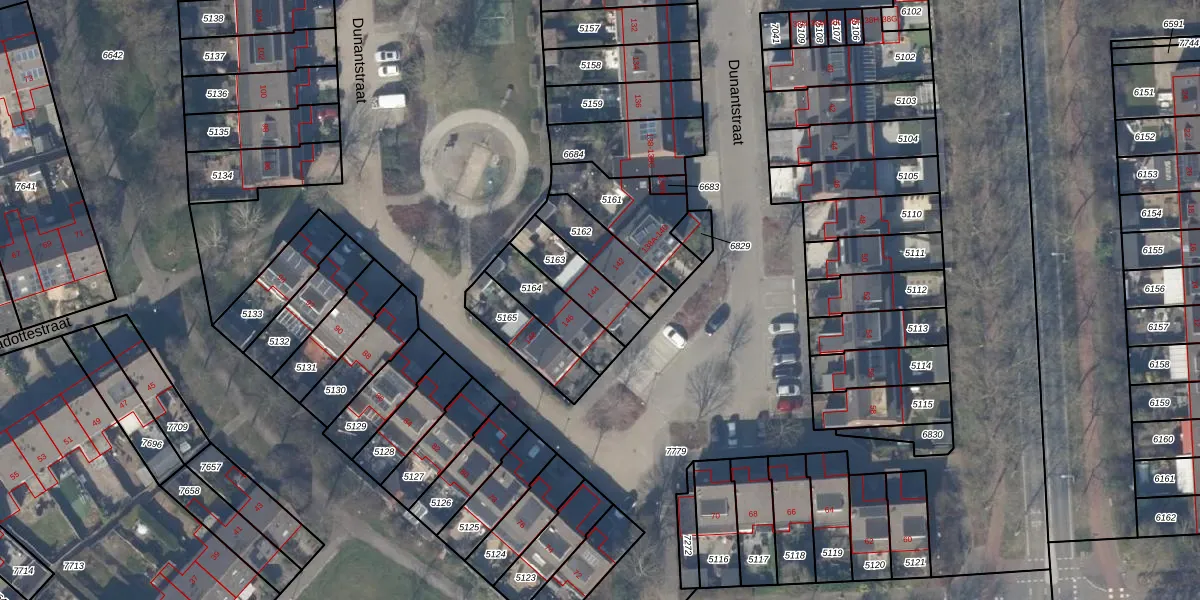 Het perceel waarop Dunantstraat 144 staat heeft een oppervlakte van 163 m². Dit is een middelgroot perceel. De perceeloppervlakte wordt geregistreerd door het Kadaster. Gedetailleerde informatie over de maten van dit perceel kunt u vinden in het rapport Kadastrale kaart met maatvoering van Dunantstraat 144.
