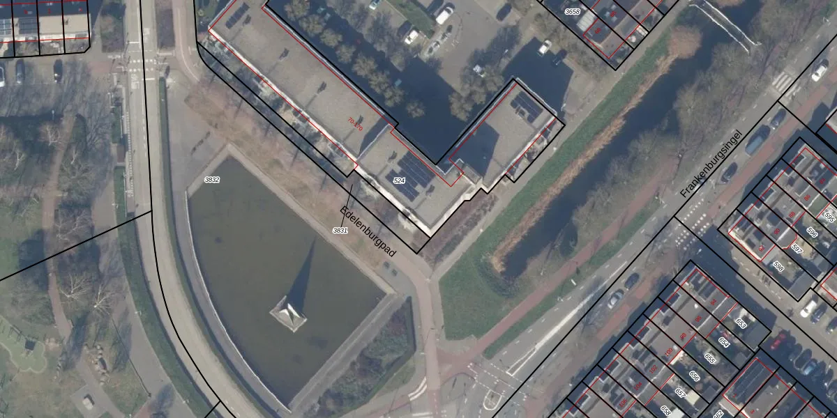 Het perceel waarop Edelenburg 102 staat heeft een oppervlakte van 1743 m². Dit is een zeer groot perceel. De perceeloppervlakte wordt geregistreerd door het Kadaster. Gedetailleerde informatie over de maten van dit perceel kunt u vinden in het rapport Kadastrale kaart met maatvoering van Edelenburg 102.