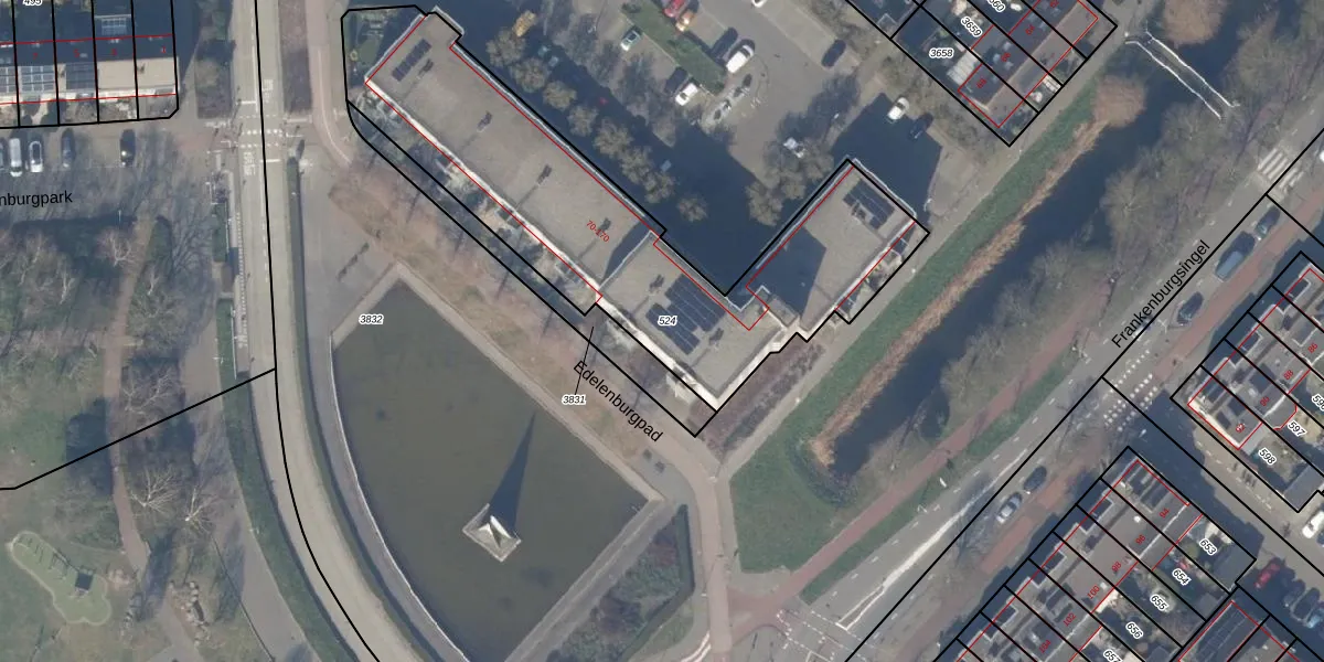 Het perceel waarop Edelenburg 106 staat heeft een oppervlakte van 1743 m². Dit is een zeer groot perceel. De perceeloppervlakte wordt geregistreerd door het Kadaster. Gedetailleerde informatie over de maten van dit perceel kunt u vinden in het rapport Kadastrale kaart met maatvoering van Edelenburg 106.