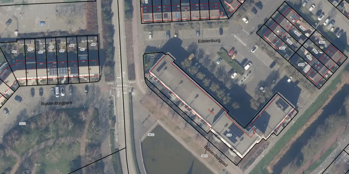 Het perceel waarop Edelenburg 118 staat heeft een oppervlakte van 1743 m². Dit is een zeer groot perceel. De perceeloppervlakte wordt geregistreerd door het Kadaster. Gedetailleerde informatie over de maten van dit perceel kunt u vinden in het rapport Kadastrale kaart met maatvoering van Edelenburg 118.
