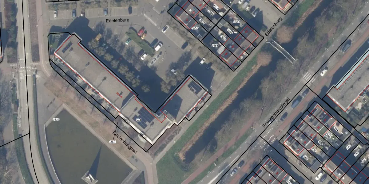 Het perceel waarop Edelenburg 126 staat heeft een oppervlakte van 1743 m². Dit is een zeer groot perceel. De perceeloppervlakte wordt geregistreerd door het Kadaster. Gedetailleerde informatie over de maten van dit perceel kunt u vinden in het rapport Kadastrale kaart met maatvoering van Edelenburg 126.