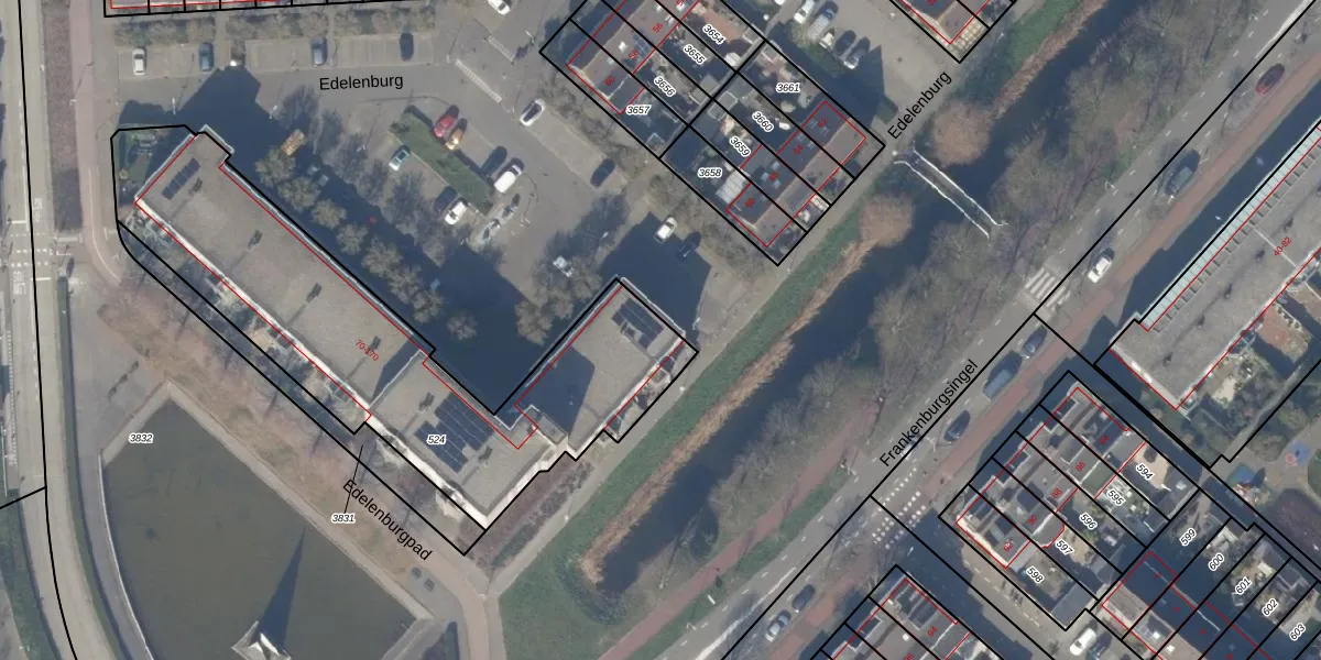 Het perceel waarop Edelenburg 70 staat heeft een oppervlakte van 1743 m². Dit is een zeer groot perceel. De perceeloppervlakte wordt geregistreerd door het Kadaster. Gedetailleerde informatie over de maten van dit perceel kunt u vinden in het rapport Kadastrale kaart met maatvoering van Edelenburg 70.