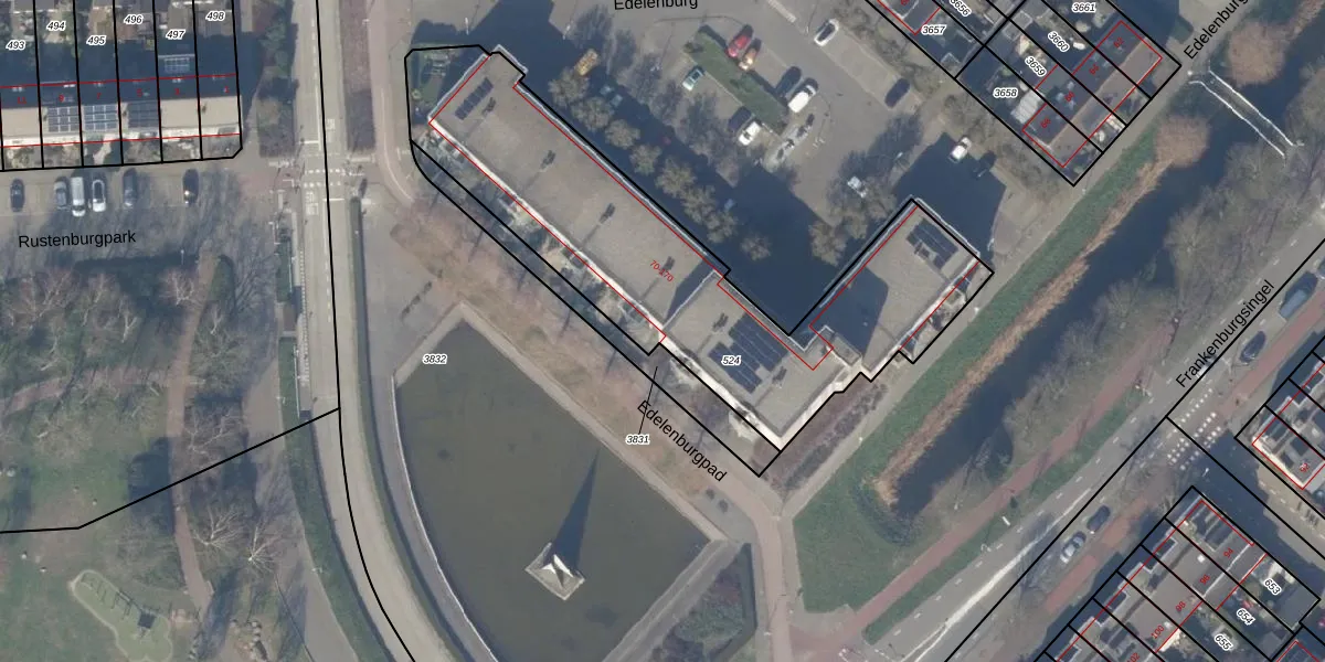 Het perceel waarop Edelenburg 78 staat heeft een oppervlakte van 1743 m². Dit is een zeer groot perceel. De perceeloppervlakte wordt geregistreerd door het Kadaster. Gedetailleerde informatie over de maten van dit perceel kunt u vinden in het rapport Kadastrale kaart met maatvoering van Edelenburg 78.