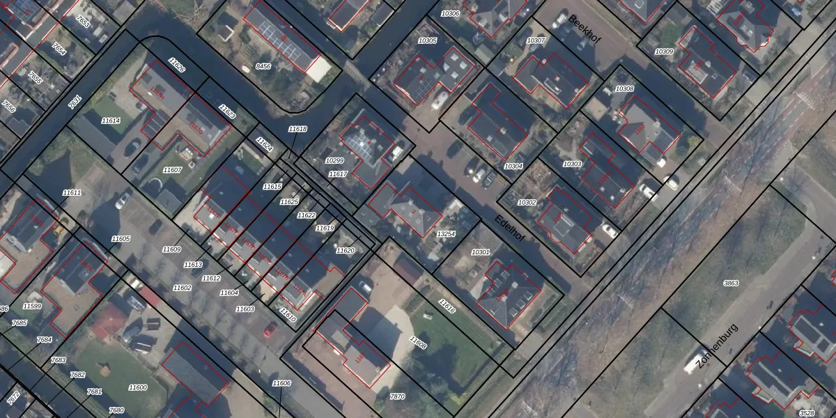 Het perceel waarop Edelhof 2 staat heeft een oppervlakte van 443 m². Dit is een groot perceel. De perceeloppervlakte wordt geregistreerd door het Kadaster. Gedetailleerde informatie over de maten van dit perceel kunt u vinden in het rapport Kadastrale kaart met maatvoering van Edelhof 2.