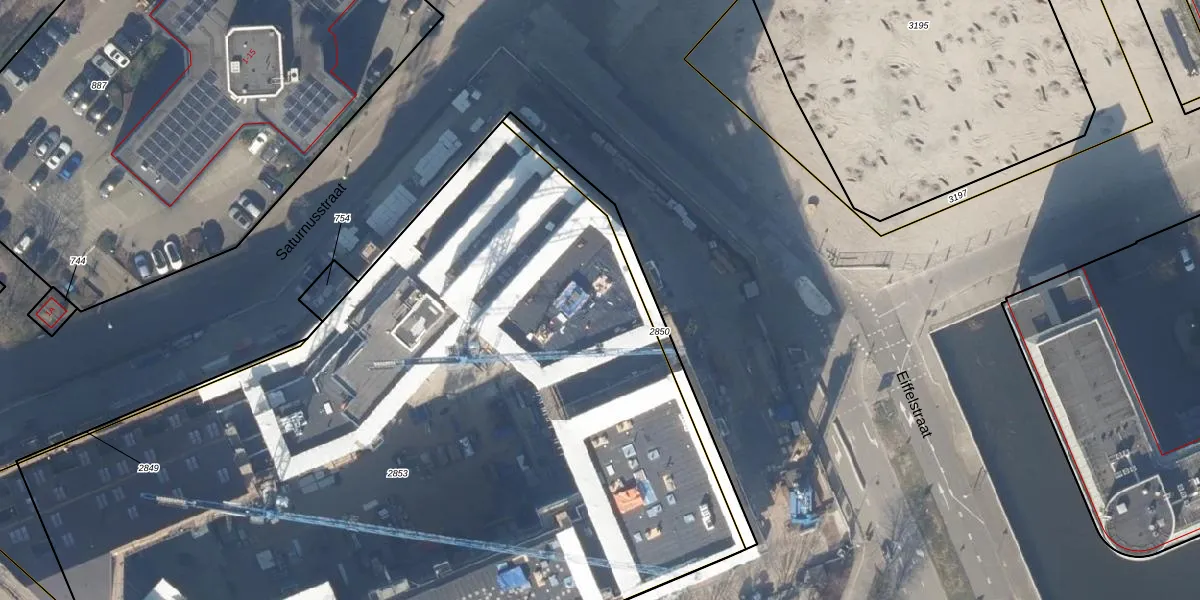 Het perceel waarop Eiffelstraat 197 staat heeft een oppervlakte van 6815 m². Dit is een zeer groot perceel. De perceeloppervlakte wordt geregistreerd door het Kadaster. Gedetailleerde informatie over de maten van dit perceel kunt u vinden in het rapport Kadastrale kaart met maatvoering van Eiffelstraat 197.