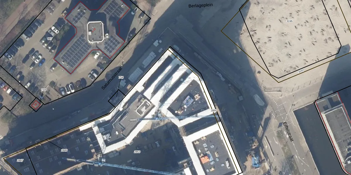 Het perceel waarop Eiffelstraat 247 staat heeft een oppervlakte van 6815 m². Dit is een zeer groot perceel. De perceeloppervlakte wordt geregistreerd door het Kadaster. Gedetailleerde informatie over de maten van dit perceel kunt u vinden in het rapport Kadastrale kaart met maatvoering van Eiffelstraat 247.