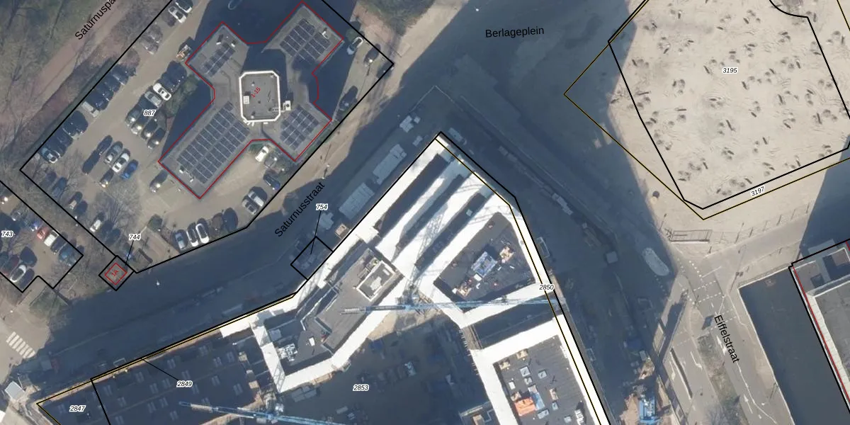 Het perceel waarop Eiffelstraat 289 staat heeft een oppervlakte van 6815 m². Dit is een zeer groot perceel. De perceeloppervlakte wordt geregistreerd door het Kadaster. Gedetailleerde informatie over de maten van dit perceel kunt u vinden in het rapport Kadastrale kaart met maatvoering van Eiffelstraat 289.