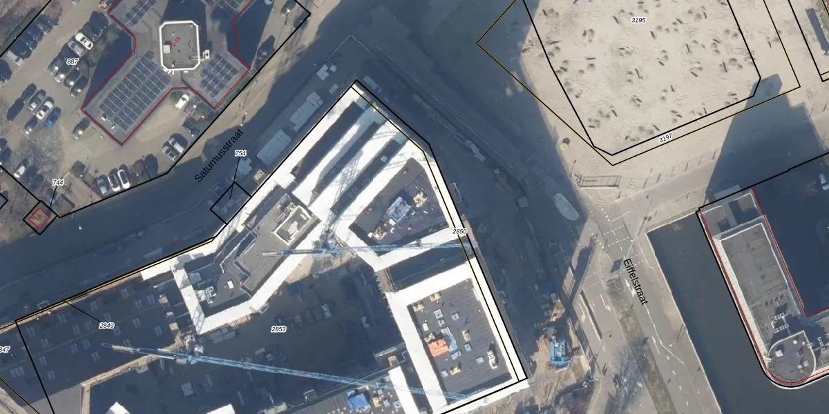 Het perceel waarop Eiffelstraat 327 staat heeft een oppervlakte van 6815 m². Dit is een zeer groot perceel. De perceeloppervlakte wordt geregistreerd door het Kadaster. Gedetailleerde informatie over de maten van dit perceel kunt u vinden in het rapport Kadastrale kaart met maatvoering van Eiffelstraat 327.