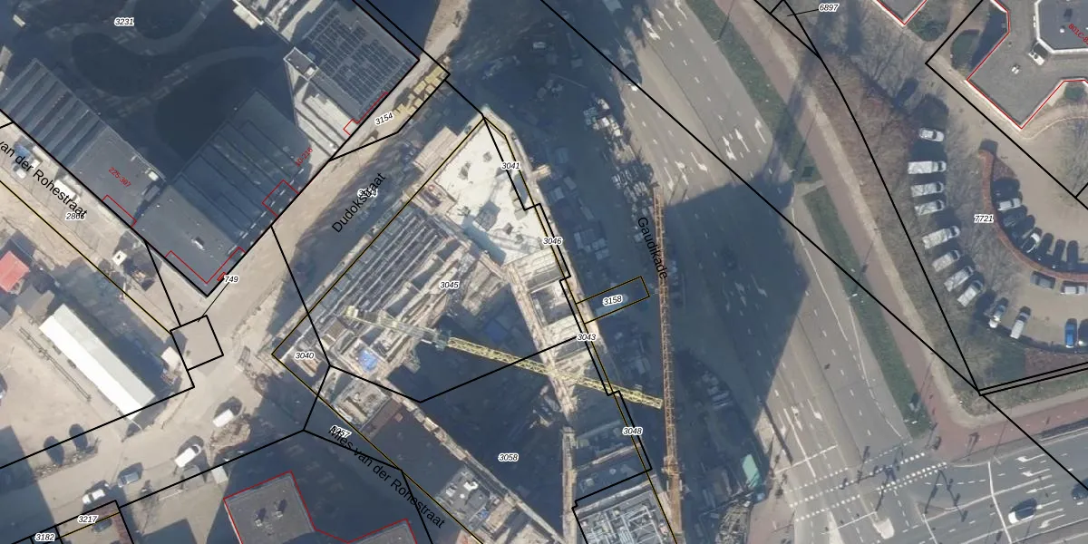 Het perceel waarop Gaudikade 159 staat heeft een oppervlakte van 1426 m². Dit is een zeer groot perceel. De perceeloppervlakte wordt geregistreerd door het Kadaster. Gedetailleerde informatie over de maten van dit perceel kunt u vinden in het rapport Kadastrale kaart met maatvoering van Gaudikade 159.