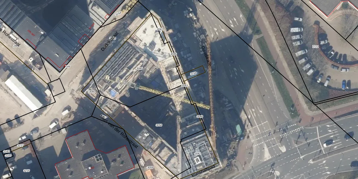 Het perceel waarop Gaudikade 165 staat heeft een oppervlakte van 1412 m². Dit is een zeer groot perceel. De perceeloppervlakte wordt geregistreerd door het Kadaster. Gedetailleerde informatie over de maten van dit perceel kunt u vinden in het rapport Kadastrale kaart met maatvoering van Gaudikade 165.