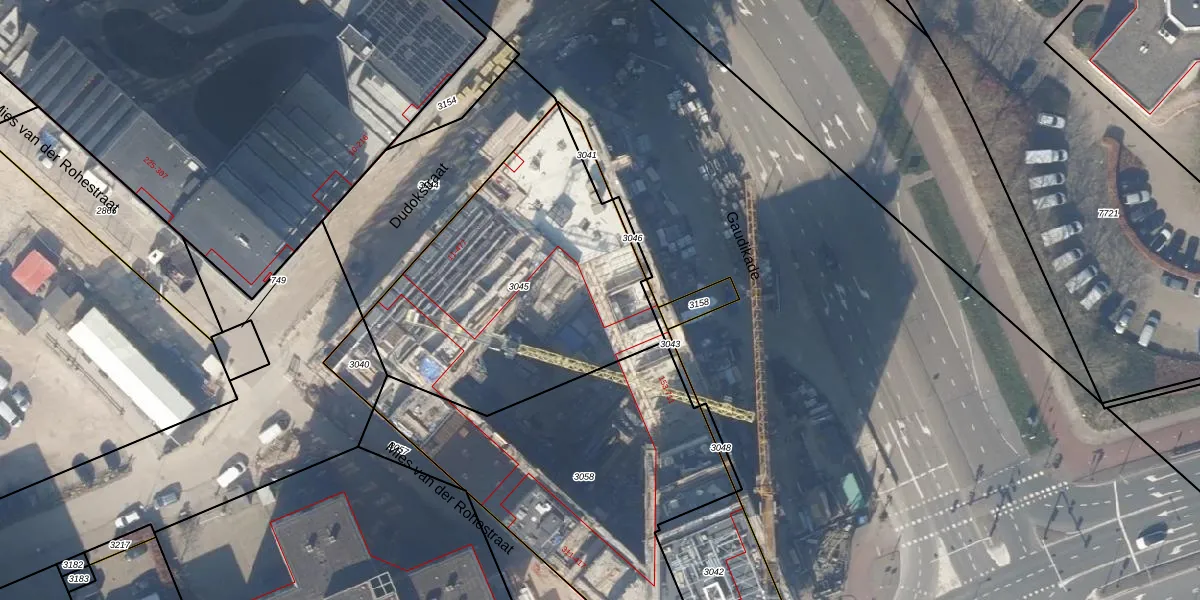 Het perceel waarop Gaudikade 205 staat heeft een oppervlakte van 1426 m². Dit is een zeer groot perceel. De perceeloppervlakte wordt geregistreerd door het Kadaster. Gedetailleerde informatie over de maten van dit perceel kunt u vinden in het rapport Kadastrale kaart met maatvoering van Gaudikade 205.
