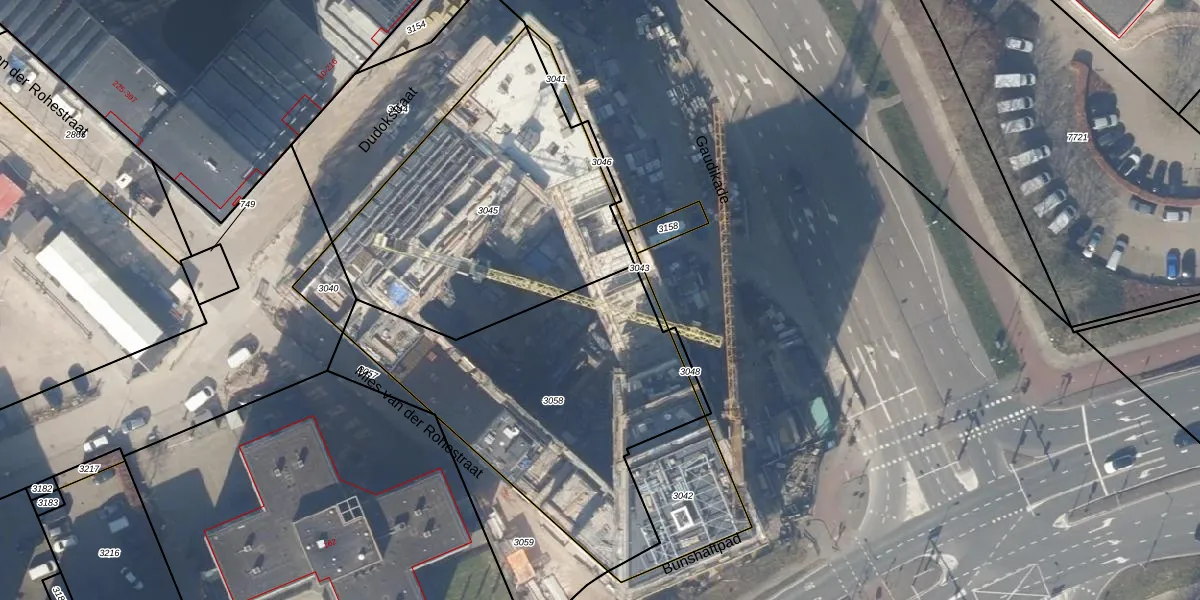 Het perceel waarop Gaudikade 245 staat heeft een oppervlakte van 1412 m². Dit is een zeer groot perceel. De perceeloppervlakte wordt geregistreerd door het Kadaster. Gedetailleerde informatie over de maten van dit perceel kunt u vinden in het rapport Kadastrale kaart met maatvoering van Gaudikade 245.
