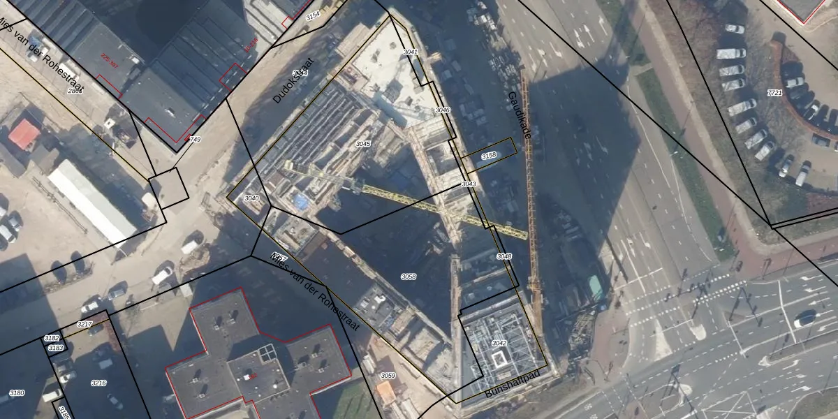 Het perceel waarop Gaudikade 277 staat heeft een oppervlakte van 1412 m². Dit is een zeer groot perceel. De perceeloppervlakte wordt geregistreerd door het Kadaster. Gedetailleerde informatie over de maten van dit perceel kunt u vinden in het rapport Kadastrale kaart met maatvoering van Gaudikade 277.