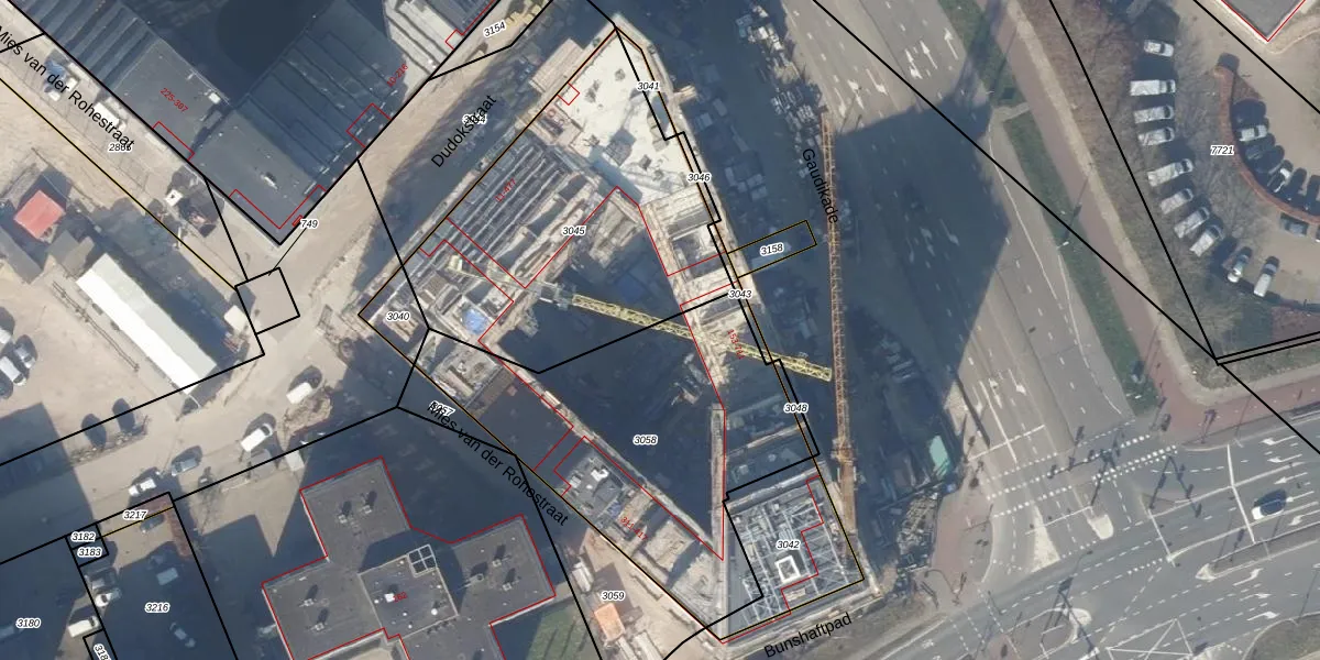 Het perceel waarop Gaudikade 279 staat heeft een oppervlakte van 1412 m². Dit is een zeer groot perceel. De perceeloppervlakte wordt geregistreerd door het Kadaster. Gedetailleerde informatie over de maten van dit perceel kunt u vinden in het rapport Kadastrale kaart met maatvoering van Gaudikade 279.