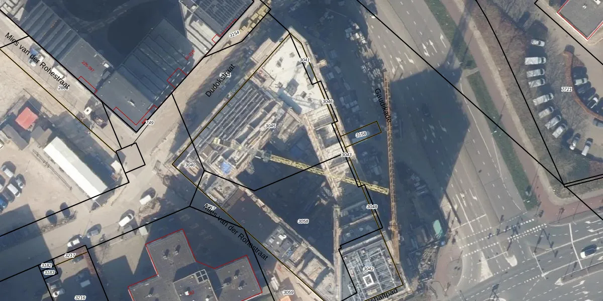 Het perceel waarop Gaudikade 301 staat heeft een oppervlakte van 1426 m². Dit is een zeer groot perceel. De perceeloppervlakte wordt geregistreerd door het Kadaster. Gedetailleerde informatie over de maten van dit perceel kunt u vinden in het rapport Kadastrale kaart met maatvoering van Gaudikade 301.