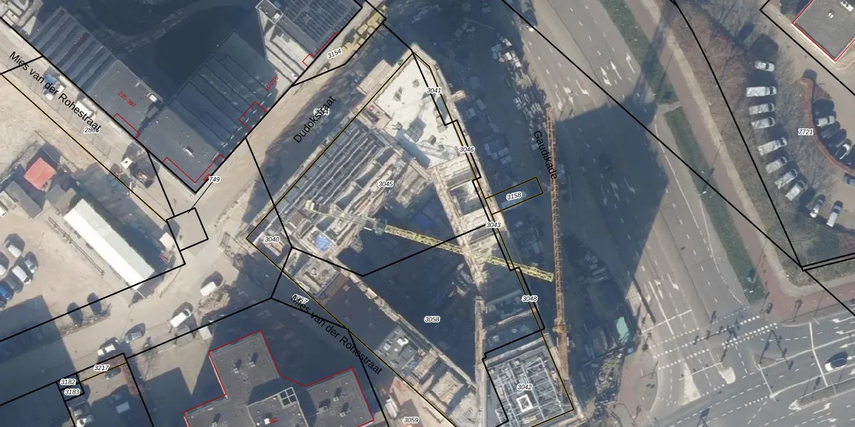 Het perceel waarop Gaudikade 305 staat heeft een oppervlakte van 1426 m². Dit is een zeer groot perceel. De perceeloppervlakte wordt geregistreerd door het Kadaster. Gedetailleerde informatie over de maten van dit perceel kunt u vinden in het rapport Kadastrale kaart met maatvoering van Gaudikade 305.