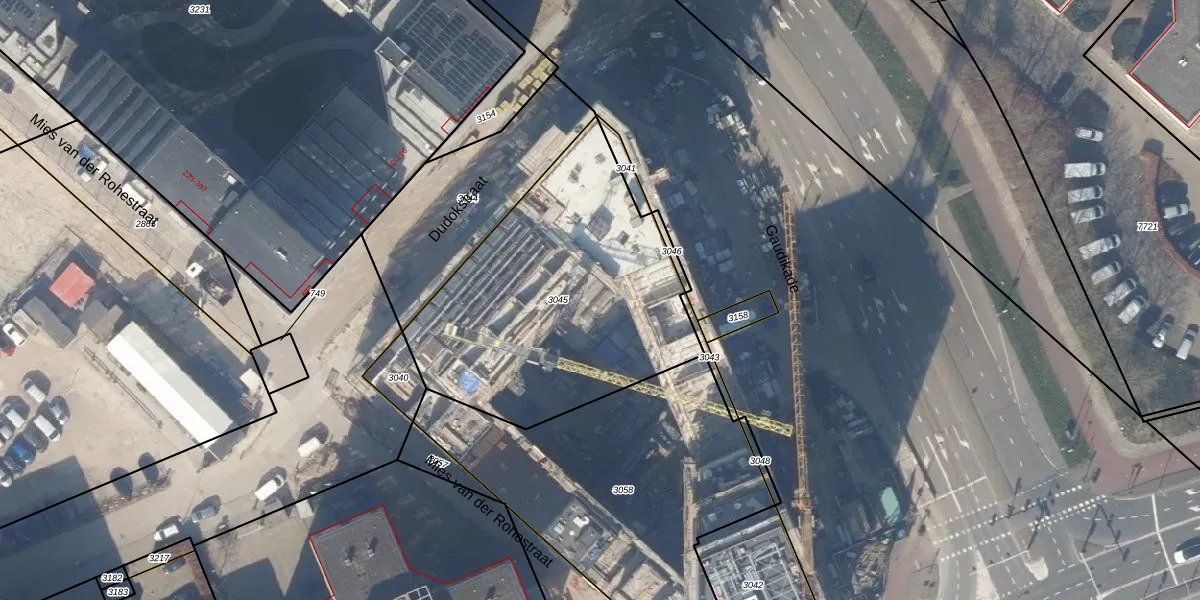 Het perceel waarop Gaudikade 327 staat heeft een oppervlakte van 1426 m². Dit is een zeer groot perceel. De perceeloppervlakte wordt geregistreerd door het Kadaster. Gedetailleerde informatie over de maten van dit perceel kunt u vinden in het rapport Kadastrale kaart met maatvoering van Gaudikade 327.