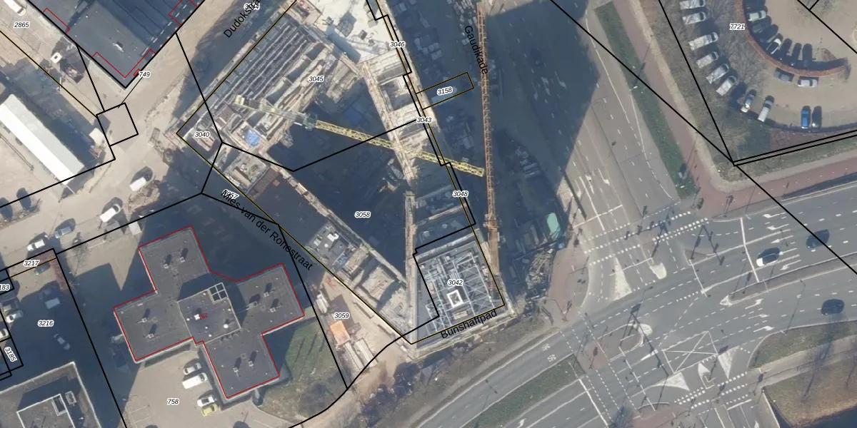 Het perceel waarop Gaudikade 407 staat heeft een oppervlakte van 1412 m². Dit is een zeer groot perceel. De perceeloppervlakte wordt geregistreerd door het Kadaster. Gedetailleerde informatie over de maten van dit perceel kunt u vinden in het rapport Kadastrale kaart met maatvoering van Gaudikade 407.