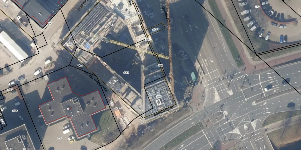 Het perceel waarop Gaudikade 419 staat heeft een oppervlakte van 1412 m². Dit is een zeer groot perceel. De perceeloppervlakte wordt geregistreerd door het Kadaster. Gedetailleerde informatie over de maten van dit perceel kunt u vinden in het rapport Kadastrale kaart met maatvoering van Gaudikade 419.