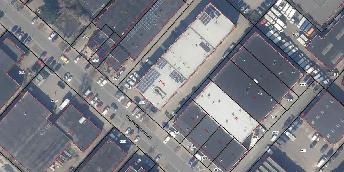Het perceel waarop Graftermeerstraat 49-B staat heeft een oppervlakte van 2889 m². Dit is een zeer groot perceel. De perceeloppervlakte wordt geregistreerd door het Kadaster. Gedetailleerde informatie over de maten van dit perceel kunt u vinden in het rapport Kadastrale kaart met maatvoering van Graftermeerstraat 49-B.
