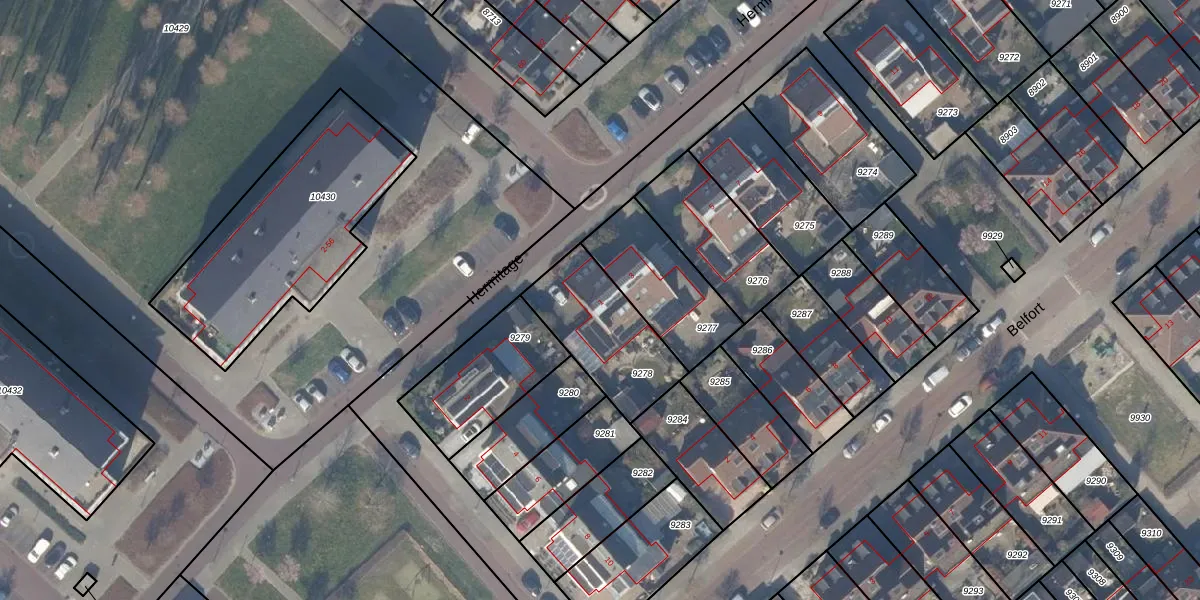 Het perceel waarop Hermitage 1 staat heeft een oppervlakte van 370 m². Dit is een groot perceel. De perceeloppervlakte wordt geregistreerd door het Kadaster. Gedetailleerde informatie over de maten van dit perceel kunt u vinden in het rapport Kadastrale kaart met maatvoering van Hermitage 1.