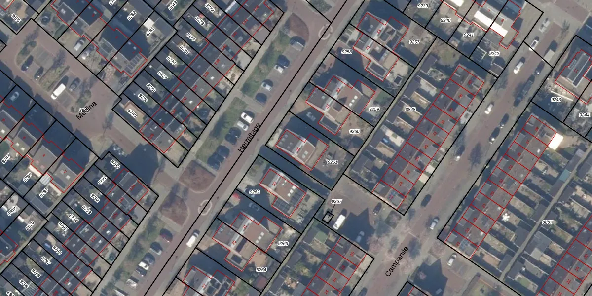 Het perceel waarop Hermitage 35 staat heeft een oppervlakte van 380 m². Dit is een groot perceel. De perceeloppervlakte wordt geregistreerd door het Kadaster. Gedetailleerde informatie over de maten van dit perceel kunt u vinden in het rapport Kadastrale kaart met maatvoering van Hermitage 35.