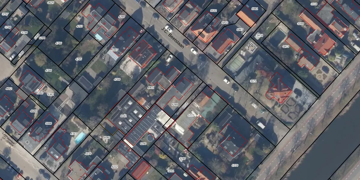 Het perceel waarop J.C. Beetslaan 6 staat heeft een oppervlakte van 323 m². Dit is een groot perceel. De perceeloppervlakte wordt geregistreerd door het Kadaster. Gedetailleerde informatie over de maten van dit perceel kunt u vinden in het rapport Kadastrale kaart met maatvoering van J.C. Beetslaan 6.