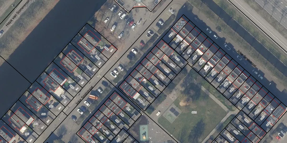 Joke Smitstraat 41 is gelegen op kadastraal perceel HLM03D6471. Deze kadastrale aanduiding is uniek en wordt gebruikt door het Kadaster om eigendomsrechten en andere zakelijke rechten vast te leggen. Het perceel maakt onderdeel uit van de kadastrale gemeente Haarlemmermeer.