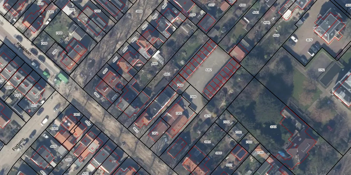 Het perceel waarop Kruislaan 11-A staat heeft een oppervlakte van 81 m². Dit is een klein perceel. De perceeloppervlakte wordt geregistreerd door het Kadaster. Gedetailleerde informatie over de maten van dit perceel kunt u vinden in het rapport Kadastrale kaart met maatvoering van Kruislaan 11-A.