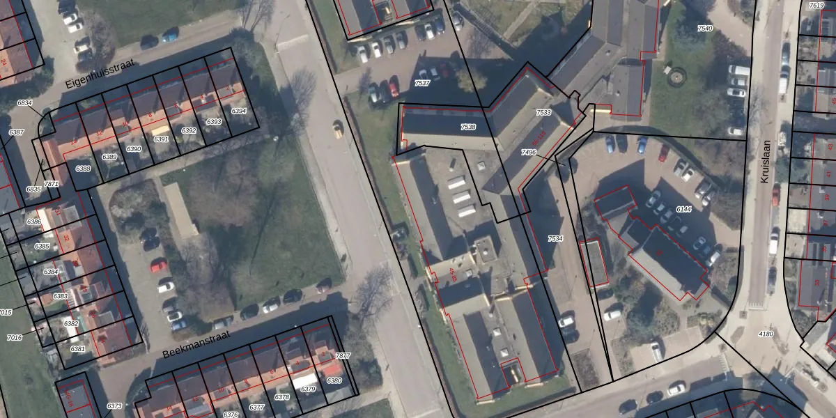 Het perceel waarop Kruislaan 94 staat heeft een oppervlakte van 5035 m². Dit is een zeer groot perceel. De perceeloppervlakte wordt geregistreerd door het Kadaster. Gedetailleerde informatie over de maten van dit perceel kunt u vinden in het rapport Kadastrale kaart met maatvoering van Kruislaan 94.
