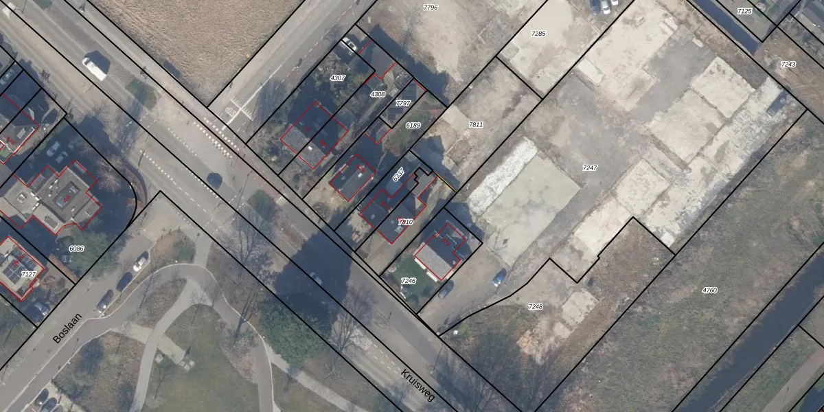 Kruisweg 875 is gelegen op kadastraal perceel HLM03K7810. Deze kadastrale aanduiding is uniek en wordt gebruikt door het Kadaster om eigendomsrechten en andere zakelijke rechten vast te leggen. Het perceel maakt onderdeel uit van de kadastrale gemeente Haarlemmermeer.