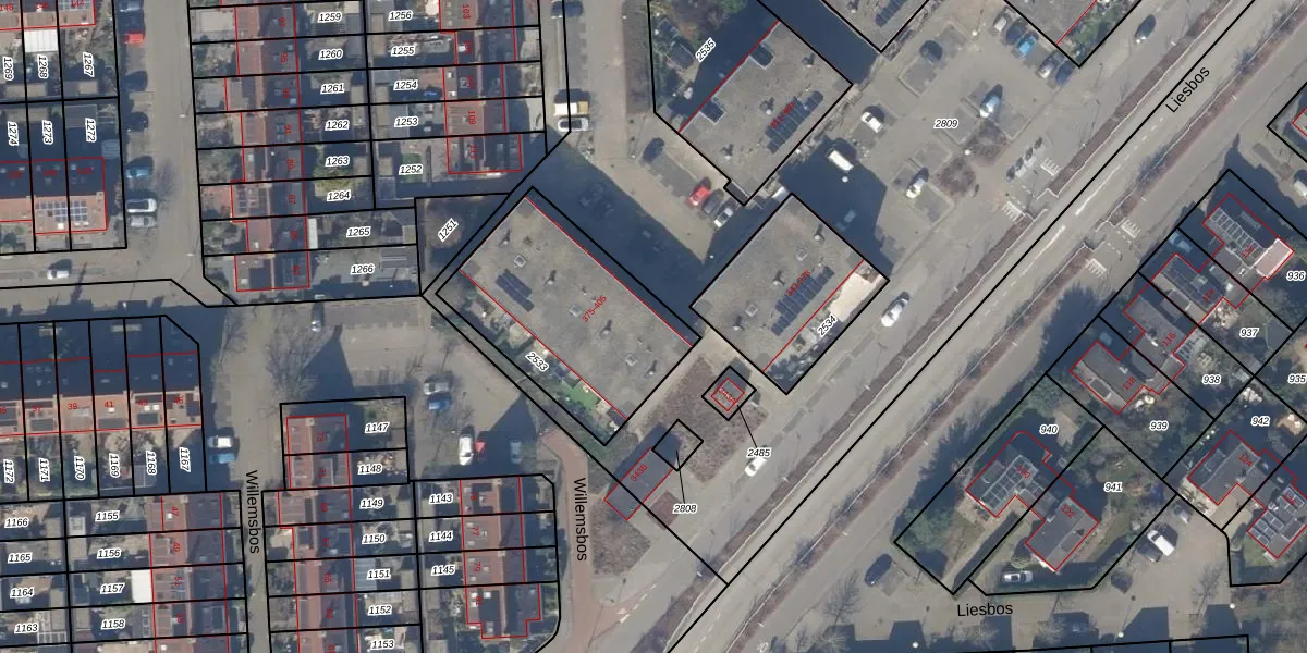 Liesbos 375 is gelegen op kadastraal perceel HLM03P2533. Deze kadastrale aanduiding is uniek en wordt gebruikt door het Kadaster om eigendomsrechten en andere zakelijke rechten vast te leggen. Het perceel maakt onderdeel uit van de kadastrale gemeente Haarlemmermeer.