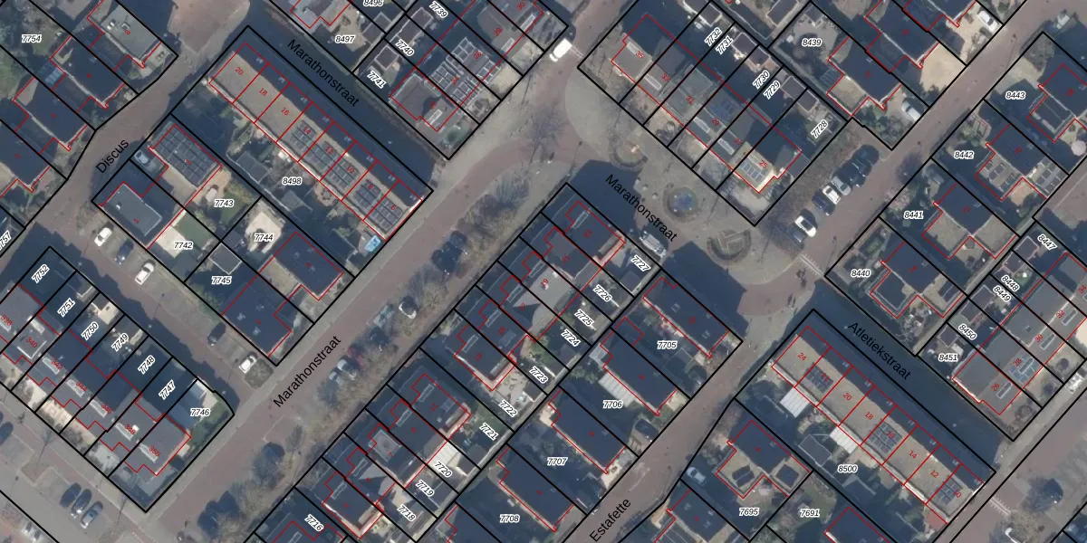 Marathonstraat 19 is gelegen op kadastraal perceel HLM03AD7725. Deze kadastrale aanduiding is uniek en wordt gebruikt door het Kadaster om eigendomsrechten en andere zakelijke rechten vast te leggen. Het perceel maakt onderdeel uit van de kadastrale gemeente Haarlemmermeer.