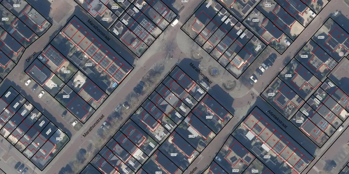 Marathonstraat 21 is gelegen op kadastraal perceel HLM03AD7726. Deze kadastrale aanduiding is uniek en wordt gebruikt door het Kadaster om eigendomsrechten en andere zakelijke rechten vast te leggen. Het perceel maakt onderdeel uit van de kadastrale gemeente Haarlemmermeer.