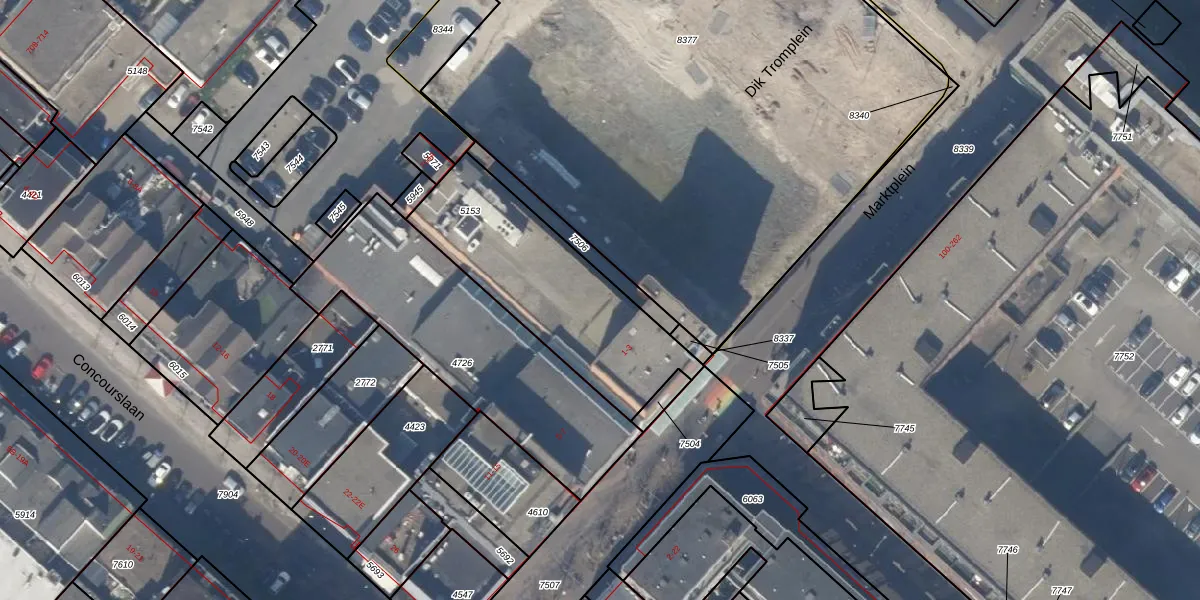 Het perceel waarop Marktlaan 1-A staat heeft een oppervlakte van 777 m². Dit is een groot perceel. De perceeloppervlakte wordt geregistreerd door het Kadaster. Gedetailleerde informatie over de maten van dit perceel kunt u vinden in het rapport Kadastrale kaart met maatvoering van Marktlaan 1-A.