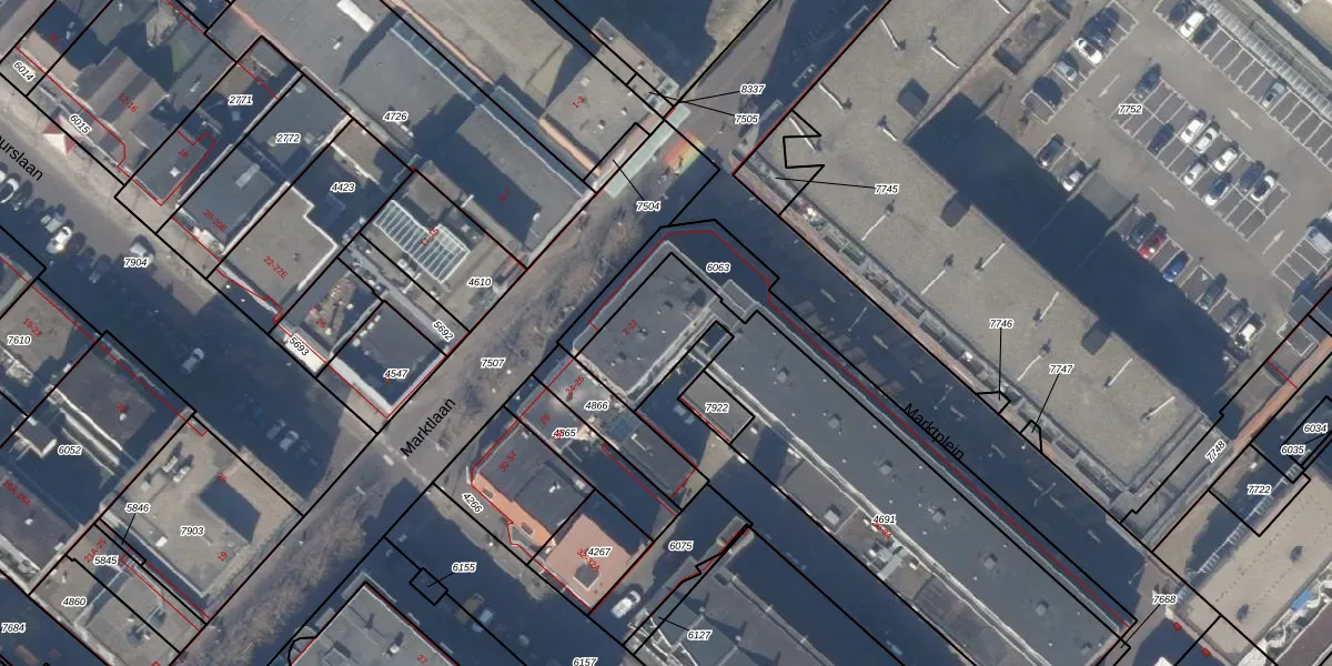 Het perceel waarop Marktlaan 18 staat heeft een oppervlakte van 1510 m². Dit is een zeer groot perceel. De perceeloppervlakte wordt geregistreerd door het Kadaster. Gedetailleerde informatie over de maten van dit perceel kunt u vinden in het rapport Kadastrale kaart met maatvoering van Marktlaan 18.
