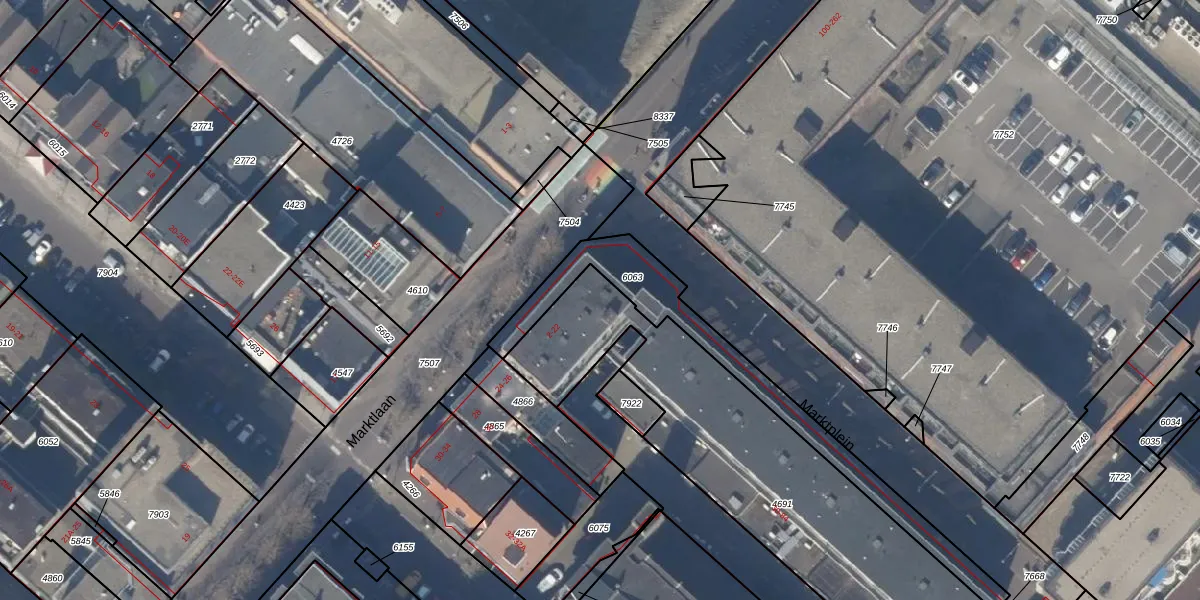 Het perceel waarop Marktlaan 8 staat heeft een oppervlakte van 1510 m². Dit is een zeer groot perceel. De perceeloppervlakte wordt geregistreerd door het Kadaster. Gedetailleerde informatie over de maten van dit perceel kunt u vinden in het rapport Kadastrale kaart met maatvoering van Marktlaan 8.