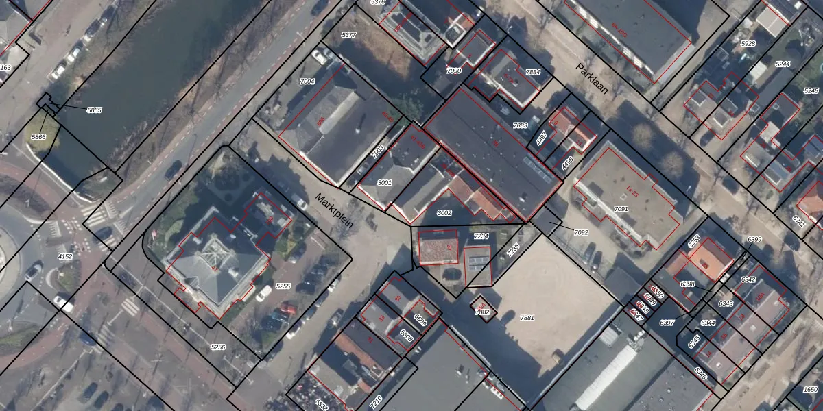 Het perceel waarop Marktplein 39 staat heeft een oppervlakte van 358 m². Dit is een groot perceel. De perceeloppervlakte wordt geregistreerd door het Kadaster. Gedetailleerde informatie over de maten van dit perceel kunt u vinden in het rapport Kadastrale kaart met maatvoering van Marktplein 39.