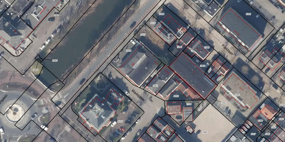 Het perceel waarop Marktplein 43 staat heeft een oppervlakte van 686 m². Dit is een groot perceel. De perceeloppervlakte wordt geregistreerd door het Kadaster. Gedetailleerde informatie over de maten van dit perceel kunt u vinden in het rapport Kadastrale kaart met maatvoering van Marktplein 43.