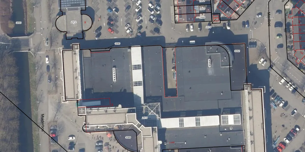 Het perceel waarop Muiderbos 120 staat heeft een oppervlakte van 7755 m². Dit is een zeer groot perceel. De perceeloppervlakte wordt geregistreerd door het Kadaster. Gedetailleerde informatie over de maten van dit perceel kunt u vinden in het rapport Kadastrale kaart met maatvoering van Muiderbos 120.