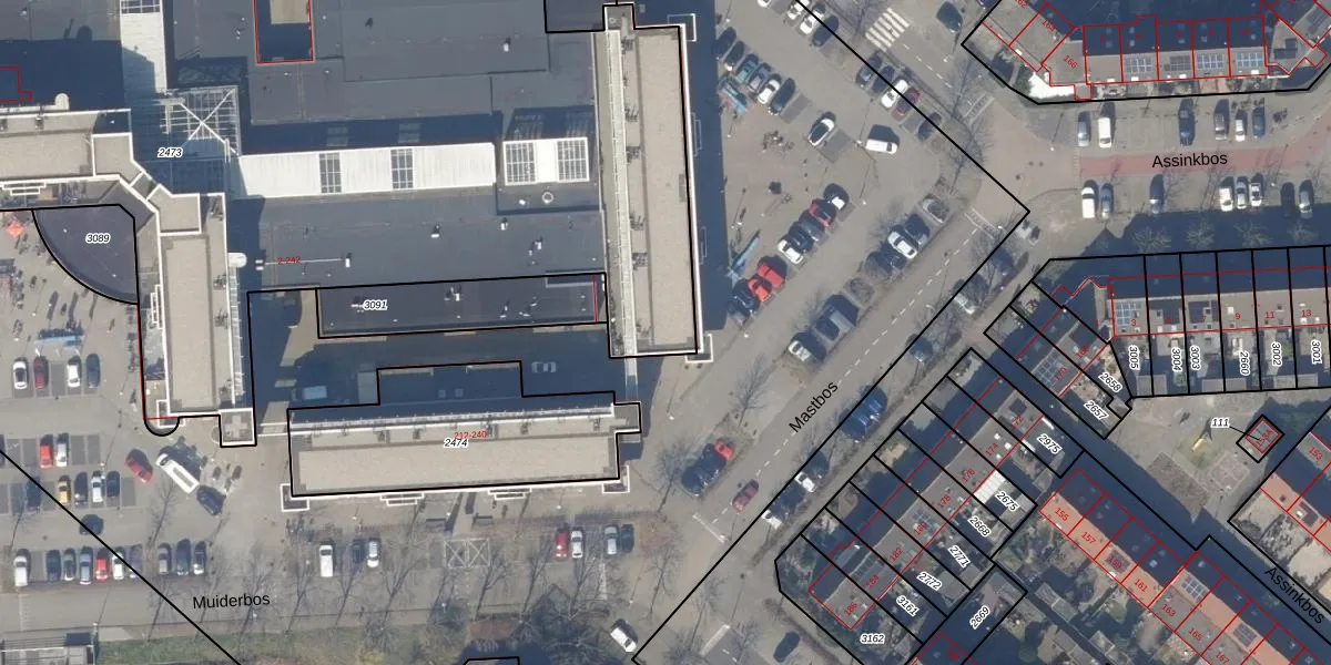 Muiderbos 14 is gelegen op kadastraal perceel HLM03P2473. Deze kadastrale aanduiding is uniek en wordt gebruikt door het Kadaster om eigendomsrechten en andere zakelijke rechten vast te leggen. Het perceel maakt onderdeel uit van de kadastrale gemeente Haarlemmermeer.