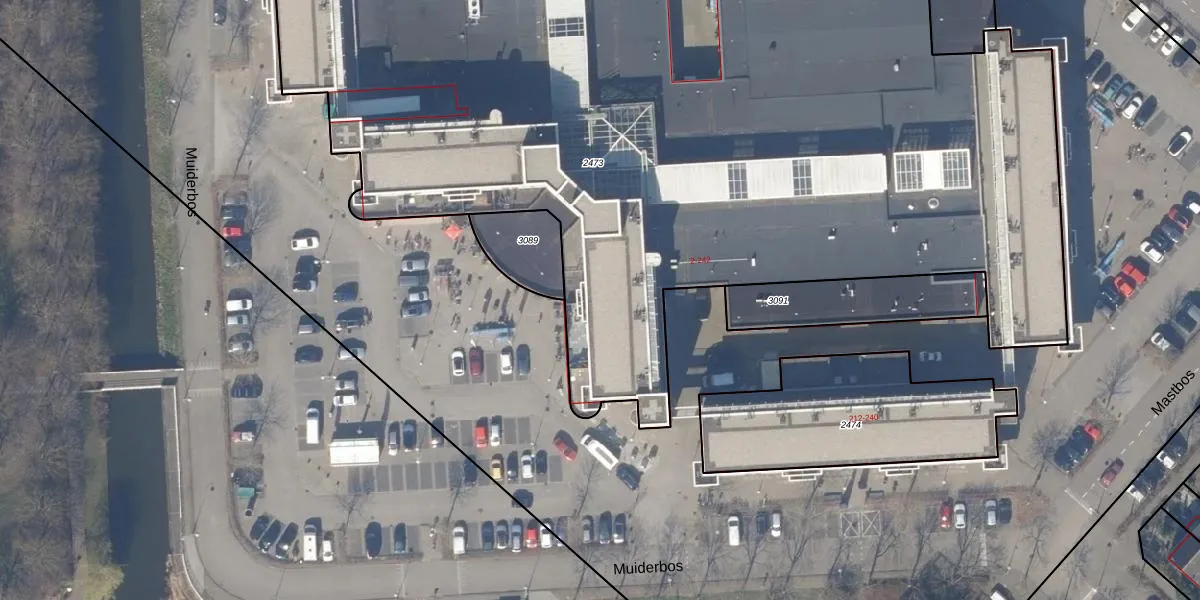 Het perceel waarop Muiderbos 186 staat heeft een oppervlakte van 7755 m². Dit is een zeer groot perceel. De perceeloppervlakte wordt geregistreerd door het Kadaster. Gedetailleerde informatie over de maten van dit perceel kunt u vinden in het rapport Kadastrale kaart met maatvoering van Muiderbos 186.