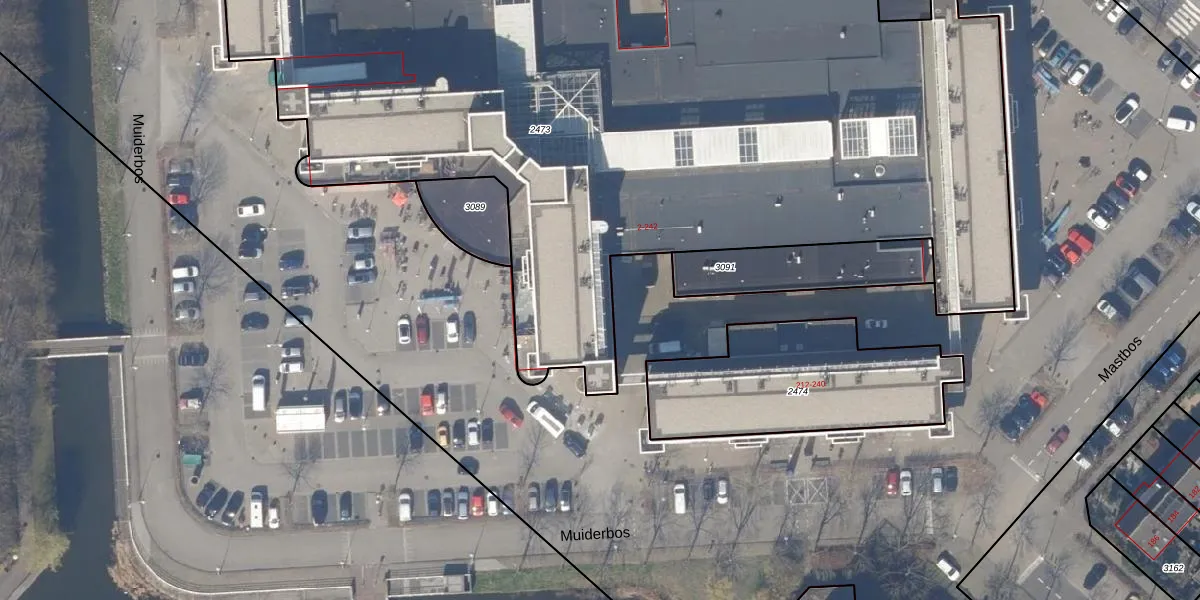 Het perceel waarop Muiderbos 204 staat heeft een oppervlakte van 7755 m². Dit is een zeer groot perceel. De perceeloppervlakte wordt geregistreerd door het Kadaster. Gedetailleerde informatie over de maten van dit perceel kunt u vinden in het rapport Kadastrale kaart met maatvoering van Muiderbos 204.