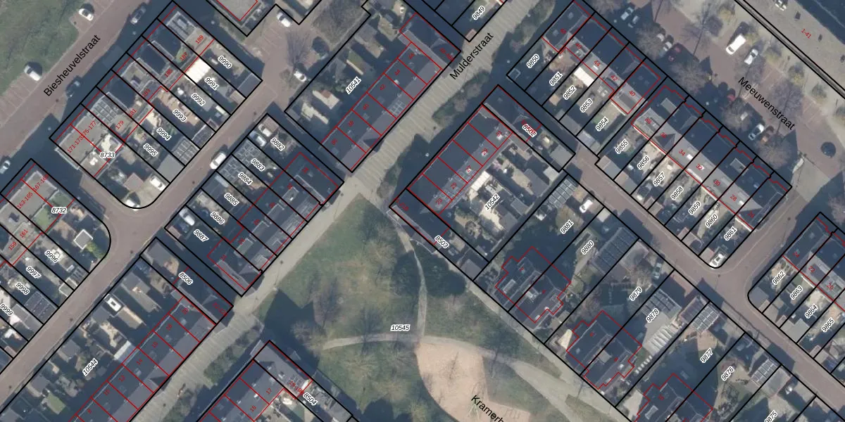 Het perceel waarop Mulderstraat 21-A staat heeft een oppervlakte van 156 m². Dit is een middelgroot perceel. De perceeloppervlakte wordt geregistreerd door het Kadaster. Gedetailleerde informatie over de maten van dit perceel kunt u vinden in het rapport Kadastrale kaart met maatvoering van Mulderstraat 21-A.