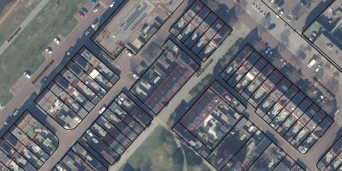 Het perceel waarop Mulderstraat 42 staat heeft een oppervlakte van 855 m². Dit is een groot perceel. De perceeloppervlakte wordt geregistreerd door het Kadaster. Gedetailleerde informatie over de maten van dit perceel kunt u vinden in het rapport Kadastrale kaart met maatvoering van Mulderstraat 42.
