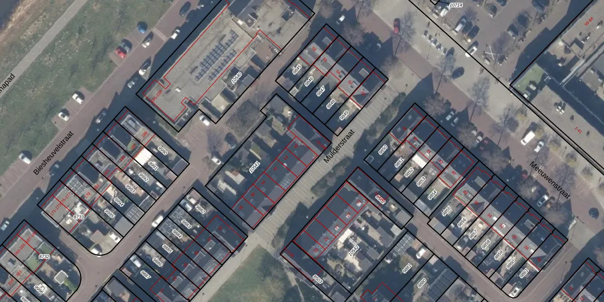 Het perceel waarop Mulderstraat 46 staat heeft een oppervlakte van 855 m². Dit is een groot perceel. De perceeloppervlakte wordt geregistreerd door het Kadaster. Gedetailleerde informatie over de maten van dit perceel kunt u vinden in het rapport Kadastrale kaart met maatvoering van Mulderstraat 46.