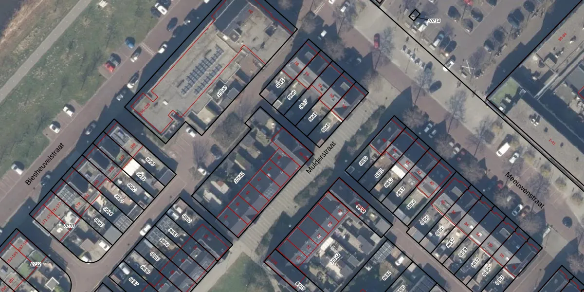 Het perceel waarop Mulderstraat 48-A staat heeft een oppervlakte van 855 m². Dit is een groot perceel. De perceeloppervlakte wordt geregistreerd door het Kadaster. Gedetailleerde informatie over de maten van dit perceel kunt u vinden in het rapport Kadastrale kaart met maatvoering van Mulderstraat 48-A.