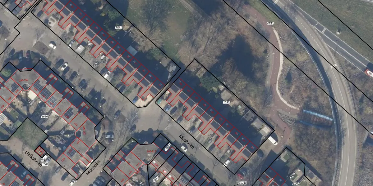 Het perceel waarop Musholm 67 staat heeft een oppervlakte van 1835 m². Dit is een zeer groot perceel. De perceeloppervlakte wordt geregistreerd door het Kadaster. Gedetailleerde informatie over de maten van dit perceel kunt u vinden in het rapport Kadastrale kaart met maatvoering van Musholm 67.