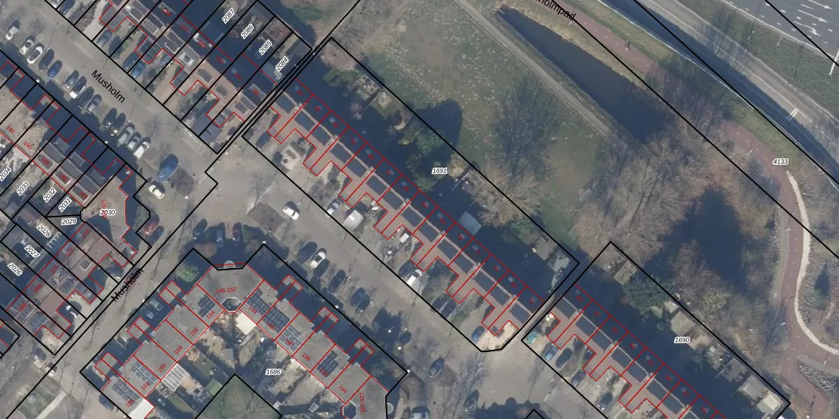 Het perceel waarop Musholm 83 staat heeft een oppervlakte van 2520 m². Dit is een zeer groot perceel. De perceeloppervlakte wordt geregistreerd door het Kadaster. Gedetailleerde informatie over de maten van dit perceel kunt u vinden in het rapport Kadastrale kaart met maatvoering van Musholm 83.
